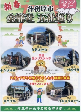 市内『手力雄神社』『加佐美神社』『御井神社』『村国真墨田神社』『村国神社』の五 社を巡りスタンプをすべて集めると縁起物を授与いたします。