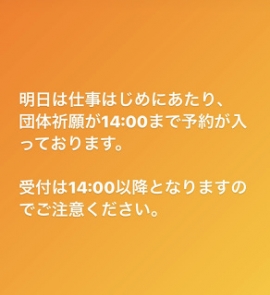 1月5日は仕事はじめにあたり、団体祈願のご予約が14:00まで入っております。