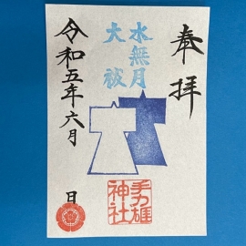 水無月の特別御朱印は6月30日に斎行する水無月の大祓式にてつかう人形(ヒトガタ)を描いております。